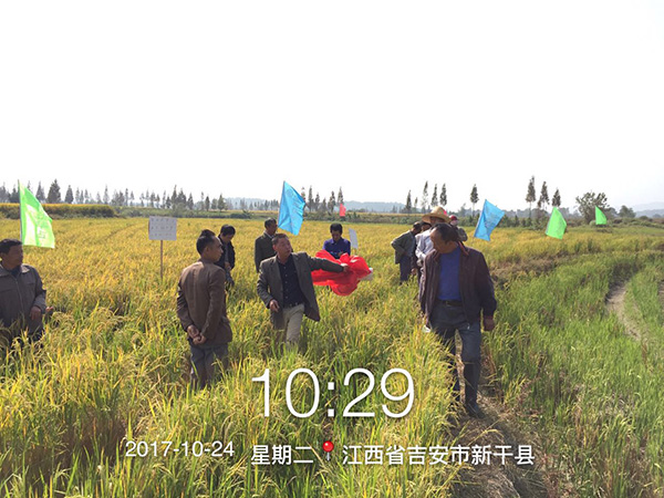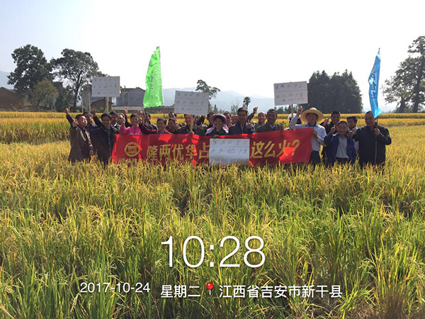 2017年10月24日,江西省新干縣召開了隆兩優(yōu)華占再生稻零售商觀摩及種植大戶預定會議,全縣各鄉(xiāng)鎮(zhèn)零售商和種植大戶等40余人前往七琴鎮(zhèn)現(xiàn)場觀摩。