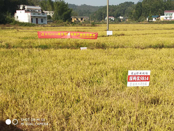 為切實貫徹農業(yè)供給側改革政策,推廣優(yōu)質稻,探索為農戶增產(chǎn)增收的途徑,亞華種業(yè)一直在積極前行,在亞華種業(yè)和湘潭縣佳鄉(xiāng)農業(yè)服務部的推動下,聯(lián)合湘潭縣茶恩寺鎮(zhèn)湘田水稻專業(yè)種植合作社種植的深兩優(yōu)5814 100畝連片再生稻今年喜獲豐收。
