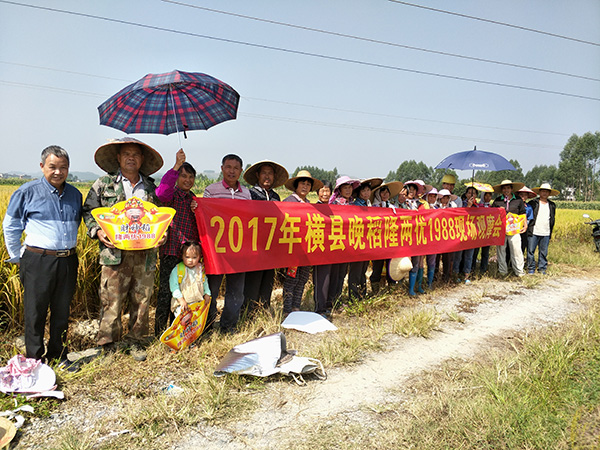 此次觀摩的位置在校椅鎮(zhèn)六蘭村,圍繞田邊種著瓜果,前后有四塊不同位置的隆兩優(yōu)1988,大家對(duì)種植水平、管理到位等問(wèn)題紛紛發(fā)表意見(jiàn)。今年沒(méi)有種的鄉(xiāng)民都在問(wèn)明年什么時(shí)候有種子賣,看著很不錯(cuò)的收成,一看就穩(wěn)產(chǎn),也沒(méi)有病害。零售商對(duì)品種也表示滿意,堅(jiān)定了明年的銷售信心。