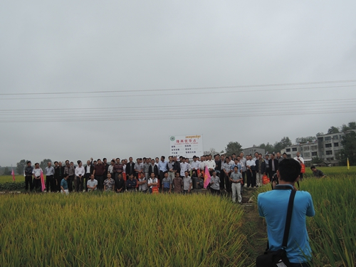 9月28日,隨州市河店鎮(zhèn)湖南亞華種子有限公司隆兩優(yōu)華占省級(jí)示范片迎來一群特別的客人:監(jiān)利縣代理商沈業(yè)新帶著的100多位由核心零售店與種田大戶組成的觀摩團(tuán)。