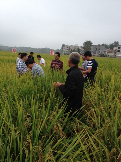 隨行的不少專家聽到介紹,迫不急待的就跑到田間去查看品種的分裂,結(jié)實(shí)率,抗病性等;“這樣的天氣竟然沒有稻瘟病,稻曲病,這個(gè)品種抗性非常好!”,“這個(gè)品種的有效分裂平均下來估計(jì)都有19根以上!”,“這線子(方言:穗子)好長(zhǎng)啊,下面的灌漿也灌滿了,一點(diǎn)癟谷都沒??!”,走在田邊看著大家都在全心投入的觀察著,不時(shí)的發(fā)出驚嘆,在這樣的惡劣的天氣環(huán)境下,竟然能有這樣的表現(xiàn),況且是在秧齡期已經(jīng)達(dá)到47天了才移栽的,產(chǎn)量還是這么高,他們都覺得驚奇!