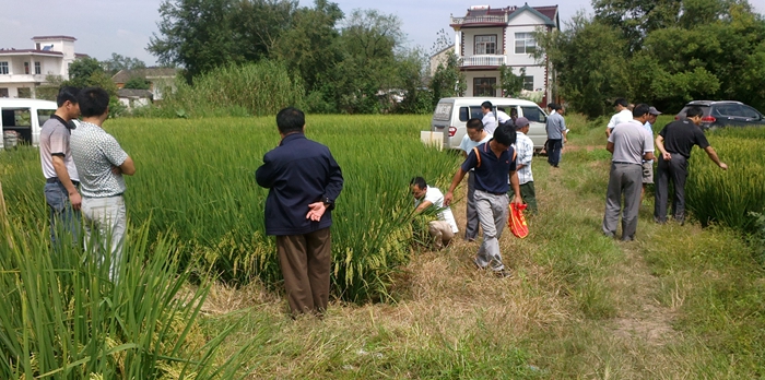 2014年9月22日上午,安徽無為縣客戶李軍組織當(dāng)?shù)睾诵目蛻粲^摩了由其布點(diǎn)示范的隆兩優(yōu)華占大田現(xiàn)場。參觀的無為縣終端客戶對中國種業(yè)最強(qiáng)音-隆兩優(yōu)華占品種反響熱烈,通過觀摩現(xiàn)場表現(xiàn),大家一致認(rèn)可隆兩優(yōu)華占品種是高產(chǎn)、穩(wěn)產(chǎn)、高抗的品種。