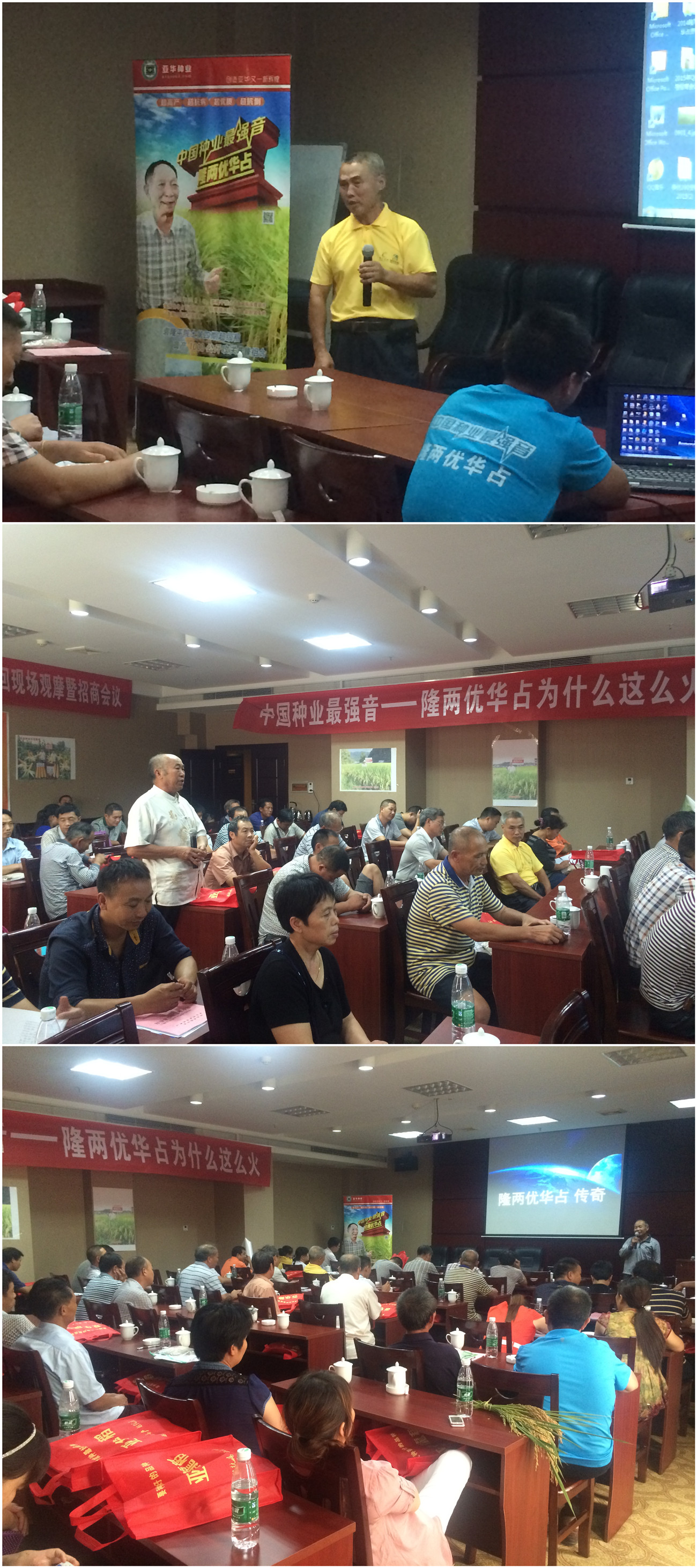 田間觀摩后,一行人回到酒店召開座談會。會議由湖南亞華種子有限公司營銷中心副經(jīng)理何潑主持召開,會上亞華種業(yè)朱喜盈詳細(xì)介紹了隆兩優(yōu)華占在全國其他地方的表現(xiàn),以及邵陽各個縣的表現(xiàn),還介紹了隆兩優(yōu)華占的運(yùn)作模式。隆回代理商阮總詳細(xì)介紹了隆兩優(yōu)華占在隆回縣各個鄉(xiāng)鎮(zhèn)的表現(xiàn),與會人員也紛紛踴躍發(fā)言,詳細(xì)介紹了隆兩優(yōu)華占在當(dāng)?shù)氐氖痉侗憩F(xiàn),一致認(rèn)為隆兩優(yōu)華占是個高產(chǎn)、優(yōu)質(zhì)、抗稻瘟病能力特強(qiáng)的好品種!雨山劉老板說,今年給了幾個品種給他父親種,其它品種穗子都很大,唯獨(dú)隆兩優(yōu)華占穗子不大,看起來不起眼,但是最后收割的時候發(fā)現(xiàn)隆兩優(yōu)華占的產(chǎn)量最高!