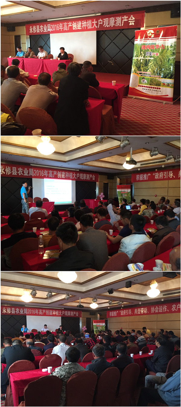 其后開始了室內(nèi)會議,會議首先由亞華種業(yè)區(qū)域經(jīng)理陳龍介紹了隆兩優(yōu)華占的特征特性和全省各地優(yōu)異表現(xiàn),然后永修縣農(nóng)業(yè)局副局長袁局長高度概括了隆兩優(yōu)華占——是個穩(wěn)產(chǎn)、高產(chǎn)的好品種,并且強調(diào)到,農(nóng)戶需要、尤其是種植大戶更需要種植這樣的好品種。