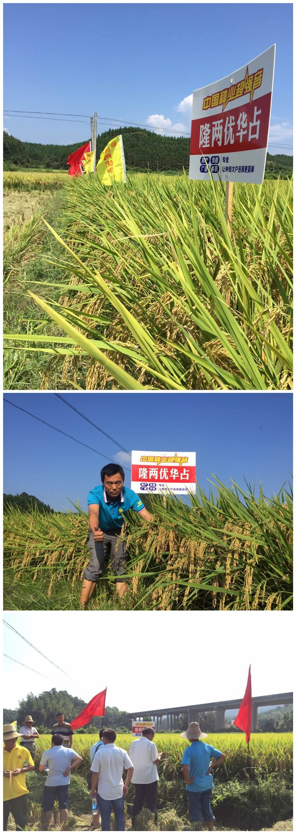 草坪村農(nóng)戶廖學義(18970529776)種植了11畝隆兩優(yōu)華占,已經(jīng)到了豐收的時候了,本次現(xiàn)場收割2畝的,收獲濕谷3867斤,合一畝1842斤,扣除15%水分,折合畝產(chǎn)干谷1643斤??粗淮忠淮墓茸友b好,農(nóng)戶臉上露出了滿意的笑容。廖學義在現(xiàn)場給大家講:“我昨天收了幾畝,濕谷最少都有1600斤,這個谷子很沉,比我去年種的品種增產(chǎn)不少”,現(xiàn)場看過的農(nóng)戶也都對隆兩優(yōu)華占贊不絕口,都表示明年一定首選隆兩優(yōu)華占,這么好的品種,不種那是一大損失啊。