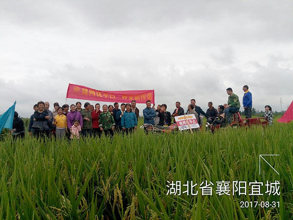 回到會(huì)場(chǎng),首先由天禾農(nóng)資總負(fù)責(zé)人劉春豐經(jīng)理就今年隆兩優(yōu)華占今年在宜城的表現(xiàn)作了簡(jiǎn)單介紹:目前很多早熟品種,結(jié)實(shí)率不高,而且后期下雨后倒伏嚴(yán)重,而隆兩優(yōu)華占不僅結(jié)實(shí)率沒受到影響,各個(gè)地方也沒有出現(xiàn)倒伏的情況,真正的金剛不倒稻。隨后由亞華種業(yè)襄陽(yáng)區(qū)域負(fù)責(zé)人謝小明經(jīng)理給大家介紹亞華種業(yè)的公司情況、隆兩優(yōu)華占七大傳奇故事以及最新“農(nóng)業(yè)部超級(jí)稻”、“水稻明星品種”、“第一個(gè)四國(guó)審水稻品種”等榮譽(yù),以及接下來(lái)的推廣工作和后續(xù)產(chǎn)品介紹。