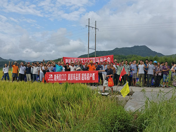 2017年9月9日,百分農(nóng)業(yè)與福建南平蒲城縣仙樓種子經(jīng)營(yíng)部共同在蒲城縣推廣隆王稻隆兩優(yōu)1212,蒲城縣經(jīng)銷商周建勇組織了永安鎮(zhèn)、石陂鎮(zhèn)和臨江鎮(zhèn)三個(gè)鄉(xiāng)鎮(zhèn)89位各村種植代表來(lái)到永興鎮(zhèn)永平農(nóng)場(chǎng)參與隆王稻觀摩測(cè)產(chǎn)大會(huì),讓他們深入了解隆王稻,開(kāi)展蒲城第一場(chǎng)隆王稻現(xiàn)場(chǎng)觀摩啟動(dòng)會(huì)。