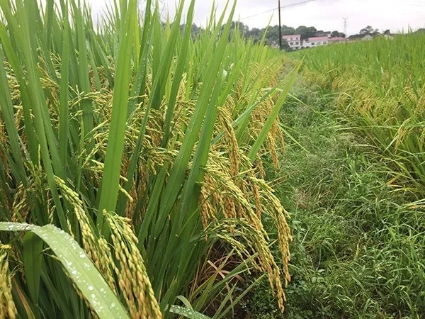 今年的連續(xù)高溫,隆兩優(yōu)1988卻有不低于90%的結(jié)實(shí)率,事實(shí)證明了這個(gè)品種耐高溫的能力超強(qiáng)。隆兩優(yōu)1988的結(jié)實(shí)率高達(dá)85%,這與其耐高溫、耐低溫的能力密切相關(guān)。隆兩優(yōu)1988株高適中,其基部節(jié)間短,桿子較粗,有韌性,所以其抗倒能力極強(qiáng)。此次觀摩很多經(jīng)銷商用力壓莖稈,隆兩優(yōu)1988都能很快恢復(fù)直立,莖稈彈性極好。