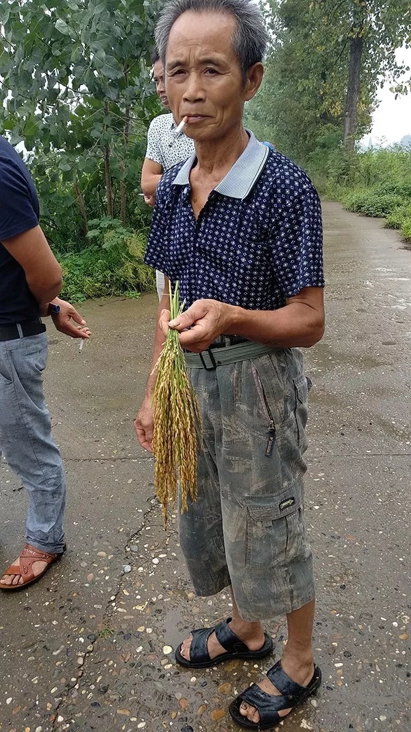 上午10點(diǎn)整,在代理商鄧總的帶領(lǐng)下,各鄉(xiāng)鎮(zhèn)的財(cái)神們陸續(xù)來(lái)到漢壽滄港隆兩優(yōu)1988縣級(jí)觀(guān)摩田,大家看到財(cái)神稻周邊的其他品種早已堅(jiān)持不了“趴著睡著了”,唯有財(cái)神稻筆挺的像站軍姿一樣屹立在那里,形成鮮明對(duì)比。大家完全不顧還下著雨,直接脫鞋下田數(shù)實(shí)粒數(shù)、看結(jié)實(shí)率和分蘗數(shù)。紛紛拿出手機(jī)拍照、拍視頻,說(shuō)一定要讓我身邊種田的朋友都知道這么好的品種,在今年高溫和暴雨連連的災(zāi)年,結(jié)實(shí)率和分蘗數(shù)還這么高,估計(jì)畝產(chǎn)至少有2000斤濕谷以上。