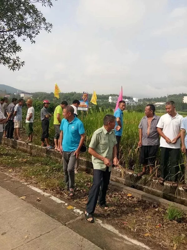 上午九點(diǎn)開(kāi)始,農(nóng)戶陸陸續(xù)續(xù)集合,集合完畢之后,大家一起趕往隆王稻觀摩田塊。不用說(shuō),開(kāi)始看田塊了,三三兩兩的,開(kāi)始散開(kāi)了,看株型、看穗子、數(shù)結(jié)實(shí)率,很多農(nóng)戶直接翻開(kāi)稻子,檢查稻桿和根,看有無(wú)稻飛虱,鉆心蟲(chóng)。今年飛虱、鉆心蟲(chóng)肆掠了當(dāng)?shù)氐奶飰K,這兩種病蟲(chóng)害比較多,大家也更加關(guān)注品種的抗病性了??赐旰螅蠹冶硎竞軡M意,這塊田不僅分蘗結(jié)實(shí)很強(qiáng),連當(dāng)?shù)厥⑿械娘w虱、鉆心蟲(chóng)都無(wú)影無(wú)蹤,讓大家更加欣喜的是,隆王稻的米質(zhì)那可是數(shù)一數(shù)二的,這個(gè)品種的表現(xiàn)實(shí)在是完美,不用說(shuō),來(lái)年就種它了。