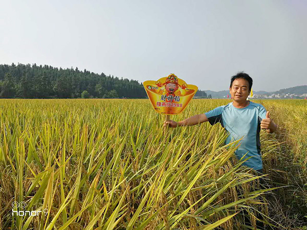 此次觀摩的示范田是連片種植,像這種大戶連片種植采用的是粗放式管理,再加上之前連續(xù)的陰雨天對品種來說都是一個很大的考驗,到底隆兩優(yōu)1988能否經得起考驗?當大家來到田間,隆兩優(yōu)1988的表現(xiàn)不僅沒有像大家擔心的那樣,反而表現(xiàn)得很出色:葉青籽黃、分蘗多、穗子多、稻谷大而飽滿、結實率高,在看完田間的品種表現(xiàn)后,在場的種植大戶都表示不枉此行,可以看到這么好的品種,并表示明年都會種隆兩優(yōu)1988,好品種就要經的起考驗!