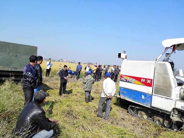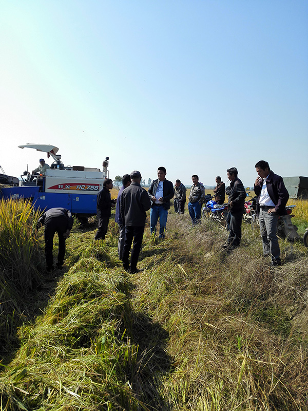 在40多位經(jīng)驗(yàn)豐富的種植大戶的見證下,整片田收割,種植大戶自己持GPS
