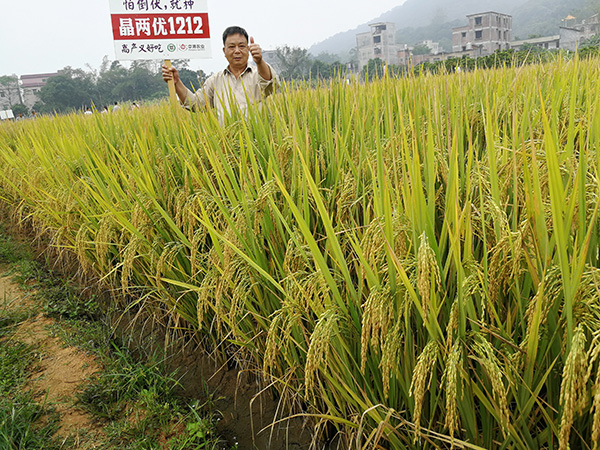 在浦北縣龍頭鎮(zhèn)中南村有種芋頭的習慣,但是種完芋頭后再種水稻往年都會沒有收成。但是今年種的晶兩優(yōu)1212將這個情況改變了。田塊主人劉大爺說今年是一個豐收年,不停地夸贊“種完芋頭后出黃金”。