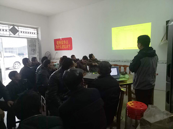 上午10點左右,會議在三陽港鎮(zhèn)農莊會議室召開,首先由亞華事業(yè)部湘北大區(qū)經理康杰發(fā)言,分別從品種的特性、優(yōu)勢及近幾年桃源當地隆兩優(yōu)華占的表現情況進行講解。接著由桃源縣代理商黃繼桃發(fā)表講話,介紹隆兩優(yōu)華占的播種技術要點以及在桃源地區(qū)的表現情況,強調農戶在明年可以調整播期,提高米質。再接著由農戶發(fā)言,表達自己對隆兩優(yōu)華占的看法,并從自己是如何種植隆兩優(yōu)華占方面進行討論,紛紛贊揚隆兩優(yōu)華占的高產和穩(wěn)定。