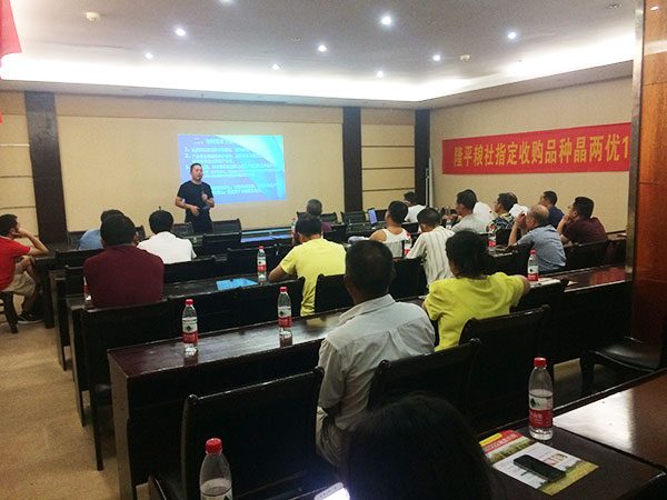 2018年6月17日隨州市2018-2019年度晶兩優(yōu)1212市場(chǎng)啟動(dòng)會(huì)如期召開,隨州市農(nóng)家富總經(jīng)理?xiàng)畹轮尽喨A種業(yè)中湘農(nóng)業(yè)湖北分公司總經(jīng)理戴魏以及隨州市場(chǎng)39位零售商出席會(huì)議。通過一年觀察晶兩優(yōu)1212的高產(chǎn)、高抗、米質(zhì)優(yōu)得到了在場(chǎng)零售商的普遍認(rèn)可。為解決農(nóng)戶賣糧難的問題,隆平高科擔(dān)起社會(huì)責(zé)任,在各地區(qū)成立隆平糧社進(jìn)行稻谷收購工作引得在場(chǎng)人員的一陣喝彩聲。戴經(jīng)理也就“隆平糧社”模式以及今年稻谷收購細(xì)則作以詳解,得到全場(chǎng)零售商的肯定與支持!