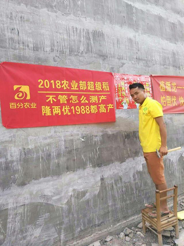 六月初廣西迎來來自湖北、湖南、江西、安微等地的營銷一線人員。他們是“財(cái)神”使者,他們不懼炎熱,不怕辛苦,不嫌麻煩的走街串巷,粘貼廣告,只要是他們能走到的地方,滿街滿巷都是“財(cái)神稻”的字樣!同時,他們還召集農(nóng)民,很有耐心的為他們講解隆兩優(yōu)1988的優(yōu)勢,達(dá)到只要是有人的地方就有我們的“財(cái)神”使者!