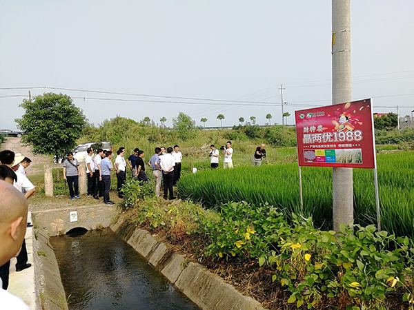 在洞庭春米業(yè)城頭山基地,所有考察領導及嘉賓都被一塊示范田所吸引,亞華種業(yè)百分農業(yè)的劉浩經理介紹到,這是2018年最新國審的一個實實在在幫農戶增收、幫米企增效的品種晶兩優(yōu)1988。