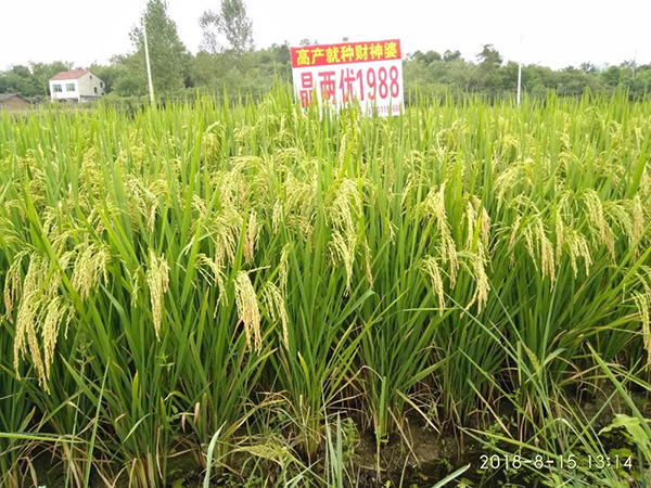 晶兩優(yōu)1988:中下游中秈新國審品種,華南晚秈即將國審;中稻種植熟期適宜;高產(chǎn)、穩(wěn)產(chǎn)性好;米質(zhì)優(yōu),國標(biāo)二級米,米飯適口性好;中抗稻瘟,最高損失率3級;2018年超級稻測產(chǎn)驗收畝產(chǎn)844.6公斤。