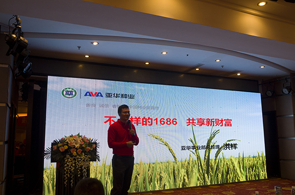 室內(nèi)會(huì)議伊始,由亞華事業(yè)部總經(jīng)理洪祥作題為《不一樣的1686,共享新財(cái)富》的報(bào)告。洪總深入分析當(dāng)前種業(yè)市場(chǎng)狀況,點(diǎn)播種業(yè)之難題、經(jīng)營(yíng)之困惑;同時(shí)告知破局之建議:聚(聚有實(shí)力的公司、聚有市場(chǎng)競(jìng)爭(zhēng)力的品種、聚核心的市場(chǎng)、聚優(yōu)良的服務(wù)和運(yùn)作)。而亞華品牌就是一個(gè)具有強(qiáng)大實(shí)力的平臺(tái),亞華種業(yè)一直秉承“亞華出品,必為精品”的品種理念,從早雜株兩優(yōu)系列,到種業(yè)日不落神話——深兩優(yōu)5814,再到四國(guó)審、超級(jí)稻——隆兩優(yōu)華占的輝煌,亞華種業(yè)以市場(chǎng)的檢驗(yàn)給大家遞交了一份份完美的答卷。超強(qiáng)恢復(fù)系華恢1686是“華占”與“谷梅4號(hào)”雜交,再用其F1與“R608”雜交而來(lái),現(xiàn)在亞華科學(xué)院區(qū)試小組中組配了“隆兩優(yōu)1686”、“晶兩優(yōu)1686”、“瑋兩優(yōu)1686”、“悅兩優(yōu)1686”、“4001s/華恢1686”、“3158s/華恢1686”等一系列具有市場(chǎng)競(jìng)爭(zhēng)力的品種。洪總最后說(shuō)到:“希望大家能夠抓住機(jī)遇、迎接挑戰(zhàn)、再造爆品、共享新財(cái)富”。