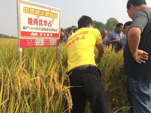 隨后代理商組織觀摩團一行召開室內座談會。會上湖南亞華公司占經(jīng)理給大家詳細介紹了隆兩優(yōu)華占的品種特征特性,以及在全國各地的強勢表現(xiàn)情況。會上今年中稻示范戶顏建躍就他自己的示范情況做了簡單說明,他今年示范的隆兩優(yōu)華占畝產(chǎn)實收干谷1756斤,并當場表示來年他將種植500畝。