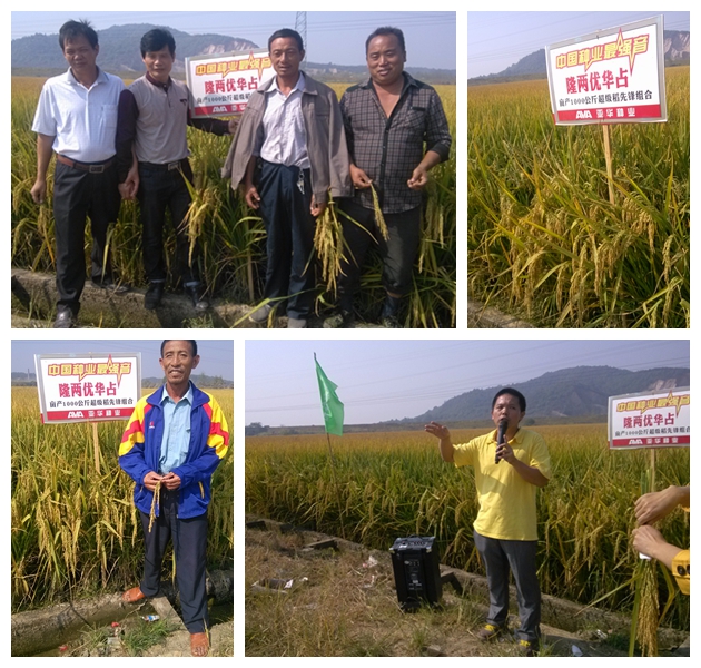 2014年10月19日,余干代理商朱葆華帶著零售商和種糧大戶三十余人驅(qū)車趕到樂平市中國龍稻-隆兩優(yōu)華占二晚示范田塊,中國龍稻不負(fù)重望,給他們帶來了強(qiáng)烈的視覺震撼!