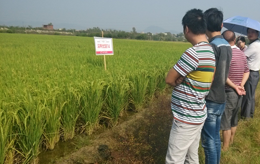 2014年10月18號,湖南亞華種子有限公司廣東陽江地區(qū)陽西縣代理商李希愉召集各個鄉(xiāng)鎮(zhèn)的零售商,隆重舉行深兩優(yōu)5814的現(xiàn)場觀摩會。李希愉對這次零售商現(xiàn)場觀摩會特別重視,準備非常充分。觀摩會現(xiàn)場不僅有陽西電視臺全程報道,還有南方農村報記者全程參與報道。
