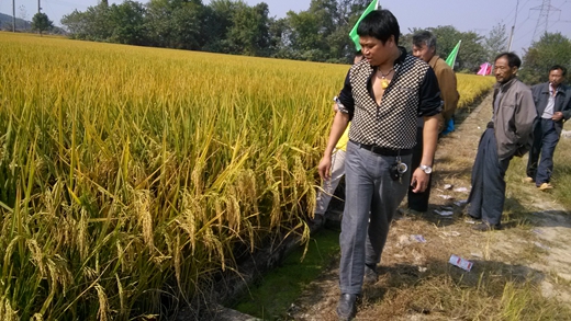 看著這田邊上的一簾又一簾稻穗,參觀人員情不自禁的用手撫摸細(xì)數(shù)。隆兩優(yōu)華占不僅僅穗長,而且著粒密度非常密,有農(nóng)戶說這穗子長的真是漂亮,四百多粒的穗子一抓一大把,真不敢相信這是二晚的稻田。這位農(nóng)戶還特意跑到對面采摘了一些*優(yōu)華占的穗子拿過來比較給大家看,他說長度相差半根手指那么長。拿到手上掂下就能知道哪個是隆兩優(yōu)華占哪個是*優(yōu)華占??梢?,我們隆兩優(yōu)華占已經(jīng)徹底打動了大家的心。除此之外,隆兩優(yōu)華占莖稈粗壯,水稻分蘗可達(dá)三十多根。有些人數(shù)的比較仔細(xì),都跑到田塊中間去數(shù)了我們問他怎么樣,他說:“這個品種真沒的說,不僅外面分蘗好,里面的都能分蘗到二十多根,這產(chǎn)量肯定不錯!”