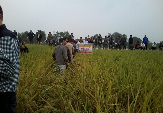 2014年9月30日,細(xì)雨蒙蒙,在安徽省宣城60多位零售商冒雨來到南豐鎮(zhèn),參加由湖南亞華種子有限公司和宣城宣種種業(yè)周業(yè)強(qiáng)聯(lián)合舉行的隆兩優(yōu)占零售商觀摩會。