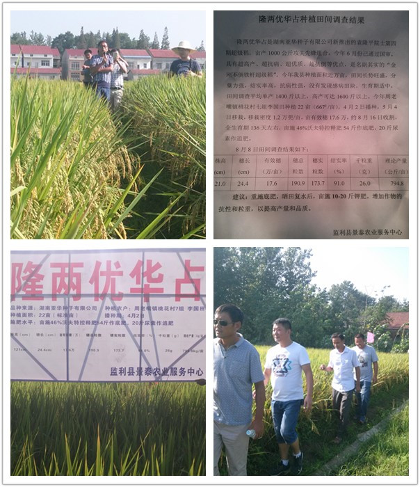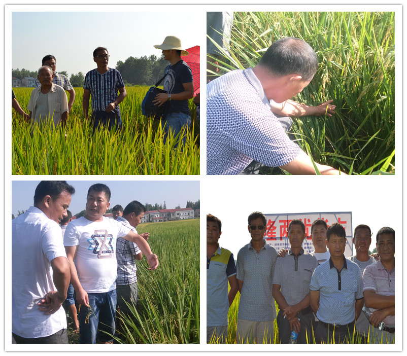 湖北監(jiān)利,古往今來兵家必爭(zhēng)之地,“兼收魚鹽之利”,水稻種植面積單縣最大,近16年來,廣占系列產(chǎn)品在此水稻種植業(yè)內(nèi)占據(jù)著主導(dǎo)的地位。8月11日上午,在這個(gè)一如既往地炎熱上午,于監(jiān)利縣周老嘴鎮(zhèn)桃花村7組卻迎來了首場(chǎng)隆兩優(yōu)華占農(nóng)民會(huì)。鑒于監(jiān)利尺八鎮(zhèn)的隆兩優(yōu)華占尚未抽穗,而在周老嘴鎮(zhèn)的表現(xiàn)尤為出眾,尺八的種植戶早已按耐不住想一睹中國(guó)龍稻隆兩優(yōu)華占的風(fēng)采。尺八重點(diǎn)客戶季老板自發(fā)組織當(dāng)?shù)胤N植能手23人來此參觀。