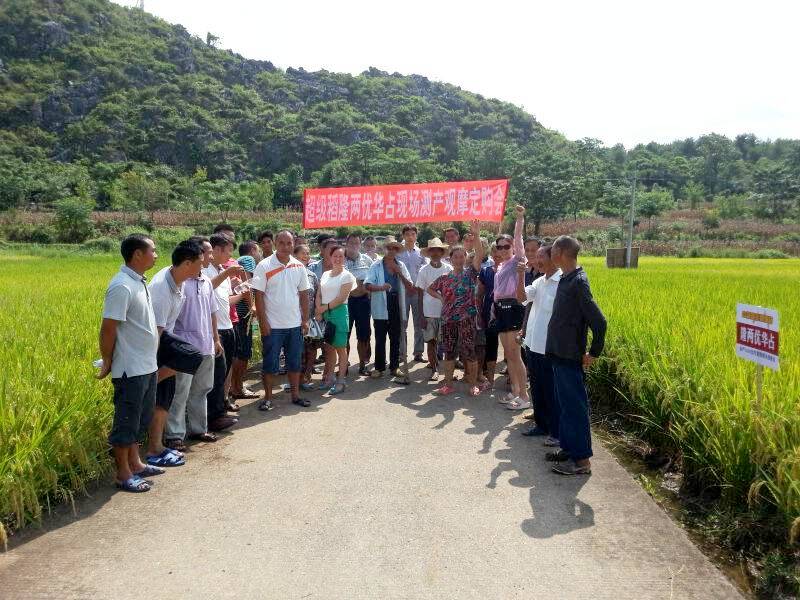 2015年8月15日,在江華田豐農(nóng)資公司鐘立民先生的組織和帶領(lǐng)下,進(jìn)行了一場(chǎng)隆兩優(yōu)華占現(xiàn)場(chǎng)測(cè)產(chǎn)觀摩會(huì),共有40多名鄉(xiāng)鎮(zhèn)零售商及種田大戶到示范現(xiàn)場(chǎng)進(jìn)行了觀摩。