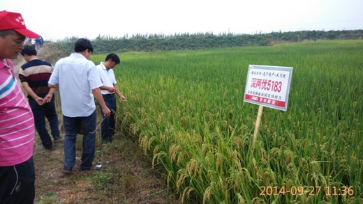 2014年9月27日,在鳳陽(yáng)縣代理商郭守福的組織下,亞華種業(yè)口糧稻深兩優(yōu)5183現(xiàn)場(chǎng)觀摩會(huì)勝召開(kāi)。參加會(huì)議的零售商有二十多人,在代理商郭守福帶領(lǐng)下,一行人看了四塊田塊。這幾塊田在不同鄉(xiāng)鎮(zhèn),由不同農(nóng)戶種植,土壤條件、肥力水平、種植技術(shù)層次不一,有熟透馬上就能收割的,有遲一點(diǎn)還在落色 變黃的,有肥力好的,有剛剛整改過(guò)肥力跟不上的,但正好從各個(gè)方面深度表現(xiàn)了深兩優(yōu)5183的田間特點(diǎn)。所有田塊均稻曲病輕微,也沒(méi)有發(fā)生流行穗頸瘟,各位零售商對(duì)此均是稱贊不已。大家下田數(shù)分蘗,看 結(jié)實(shí),檢驗(yàn)抗倒性,沒(méi)有一點(diǎn)能被挑剔的,特別是李二莊的種植戶,他一直跟著我們看了所有田塊,對(duì)5183更是非常滿意,多次當(dāng)眾表示來(lái)年要加大種植面積。此次會(huì)議的召開(kāi),給參會(huì)人員留下了深刻的好印象,紛紛表示這才是鳳陽(yáng)需要的超級(jí)稻!