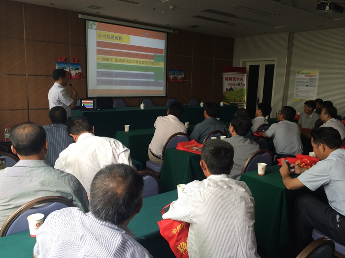 回到會議室,張來友先生代表湖南亞華種子有限公司首先介紹了公司的基本情況,科研實力、并詳細(xì)介紹了隆兩優(yōu)華占的種植方法,良種要配良法,良法到位,想不增產(chǎn)都難??!