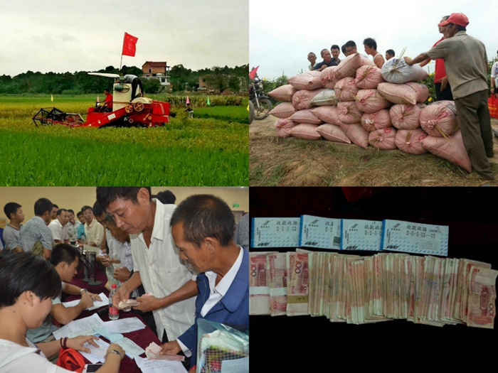 經(jīng)過(guò)二十分鐘的收割,大家最期待的現(xiàn)場(chǎng)稱重測(cè)產(chǎn)正式開(kāi)始,只見(jiàn)一袋袋稻谷被搬到電子秤,工作人員迅速進(jìn)行記錄和統(tǒng)計(jì)。經(jīng)過(guò)一番緊張忙碌的工作,結(jié)果終于揭曉:弋陽(yáng)灣里鄉(xiāng)現(xiàn)場(chǎng)實(shí)地收割稻田1.01畝,去掉水分實(shí)得干谷1804斤,創(chuàng)造弋陽(yáng)高產(chǎn)新紀(jì)錄。在場(chǎng)農(nóng)戶紛紛豎起大拇指,稱贊隆兩優(yōu)華占名副其實(shí),現(xiàn)場(chǎng)熱情空前高漲。