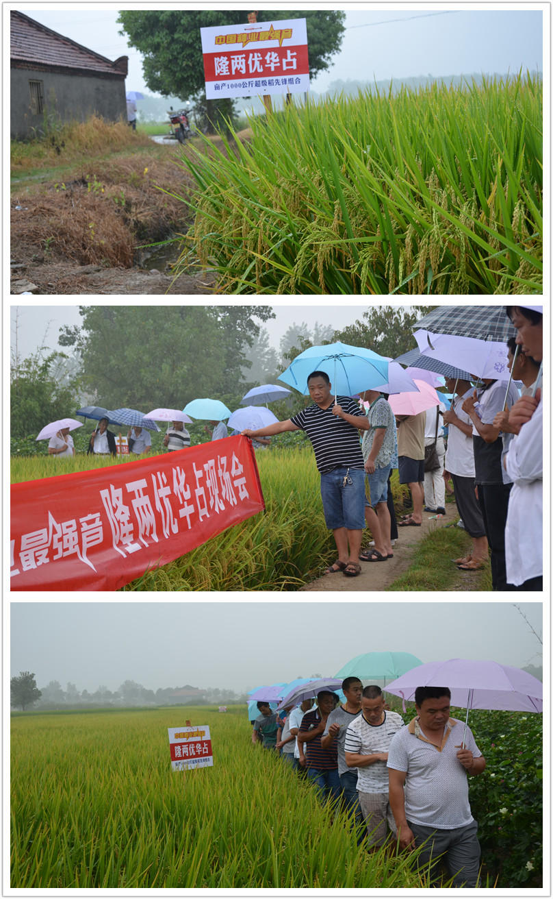 2015年8月18日中國種業(yè)最強(qiáng)音——隆兩優(yōu)華占公安縣現(xiàn)場觀摩會在章莊鋪銅橋村召開。公安縣章莊鋪銅橋村十三組連片種植隆兩優(yōu)華占300畝,有麥后直播及油菜后移栽,目前部分直播田葉青籽黃臨近收獲。該品種表現(xiàn)出熟期適宜、分蘗力強(qiáng)、抗病性好、結(jié)實(shí)率高、米質(zhì)優(yōu)良、適應(yīng)性廣、株高適合、抗倒伏性好等特點(diǎn)。這樣的好品種,用它完美的表現(xiàn)徹底的征服了公安縣高級農(nóng)藝師余新華挑剔的心,為此他決定2016年一定要大力推廣隆兩優(yōu)華占。