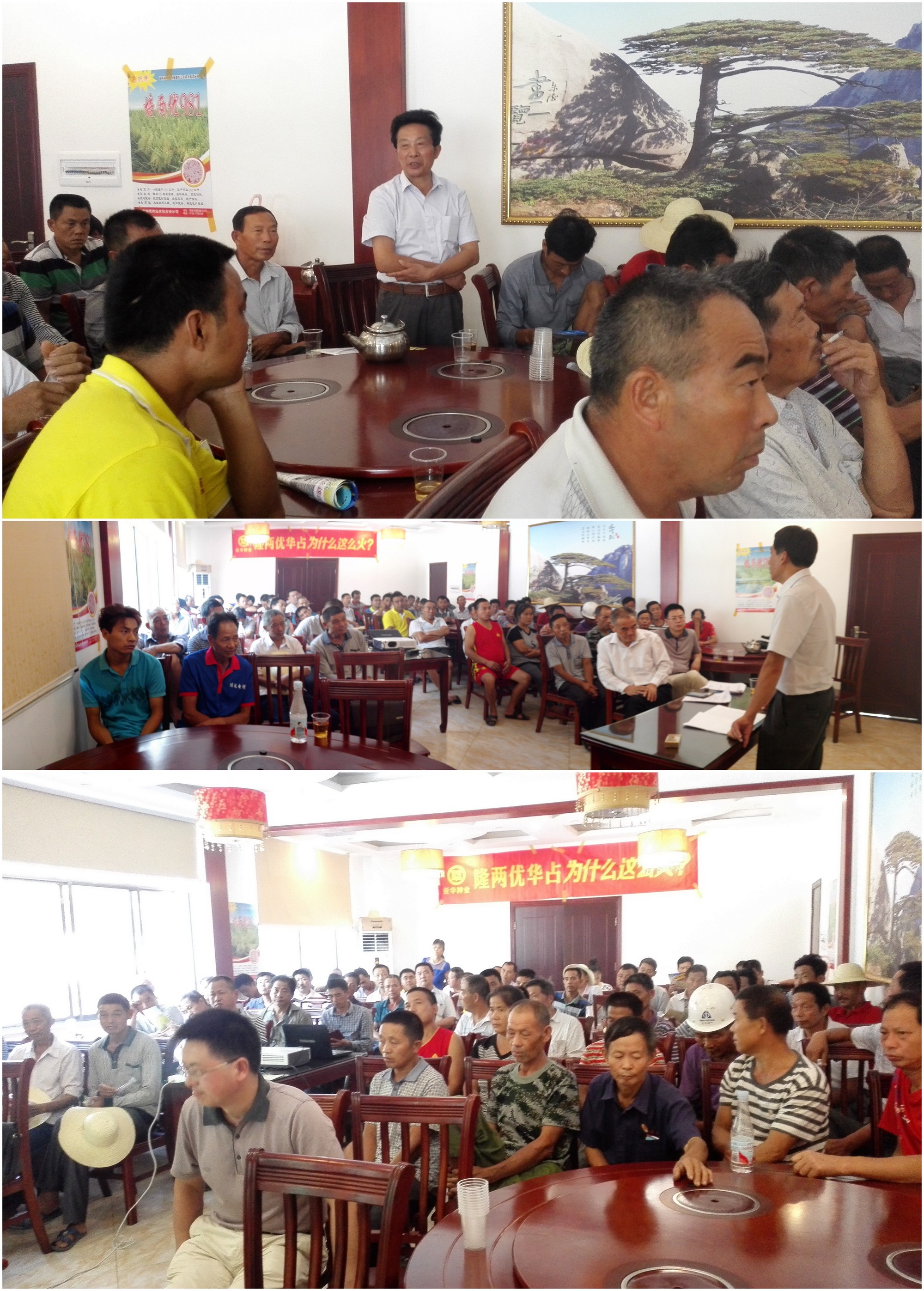 2015年8月22日,在美麗的桃花源鎮(zhèn)召開中國龍稻——隆兩優(yōu)華占現(xiàn)場觀摩會及定購會,各鄉(xiāng)鎮(zhèn)零售商及大戶代表共60多人參加。田間觀摩桃花源鎮(zhèn)種植大戶謝紅輝(井崗村 13786670455)連片種植的20畝隆兩優(yōu)華占。