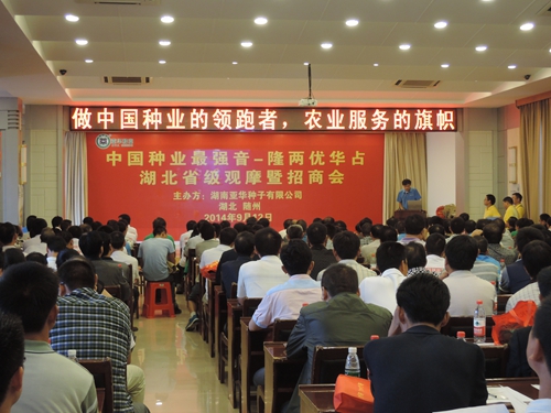 9月12日,來自湖北和河南信陽的340多位種子經(jīng)銷商和部分重點(diǎn)鄉(xiāng)鎮(zhèn)零售商齊聚炎帝故里-隨州,參加由湖南亞華種子有限公司舉辦的中國(guó)種業(yè)最強(qiáng)音-隆兩優(yōu)華占湖北省級(jí)觀摩暨招商會(huì)。