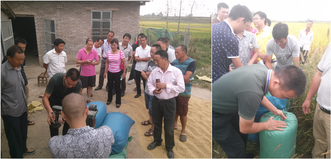 2015年9月10號,在湖北當陽市慈化鎮(zhèn),60多名零售商在代理商客戶張江宜的帶領下齊聚示范田。一場“一切以事實說話”的隆兩優(yōu)華占現(xiàn)場觀摩測產(chǎn)會順利召開。