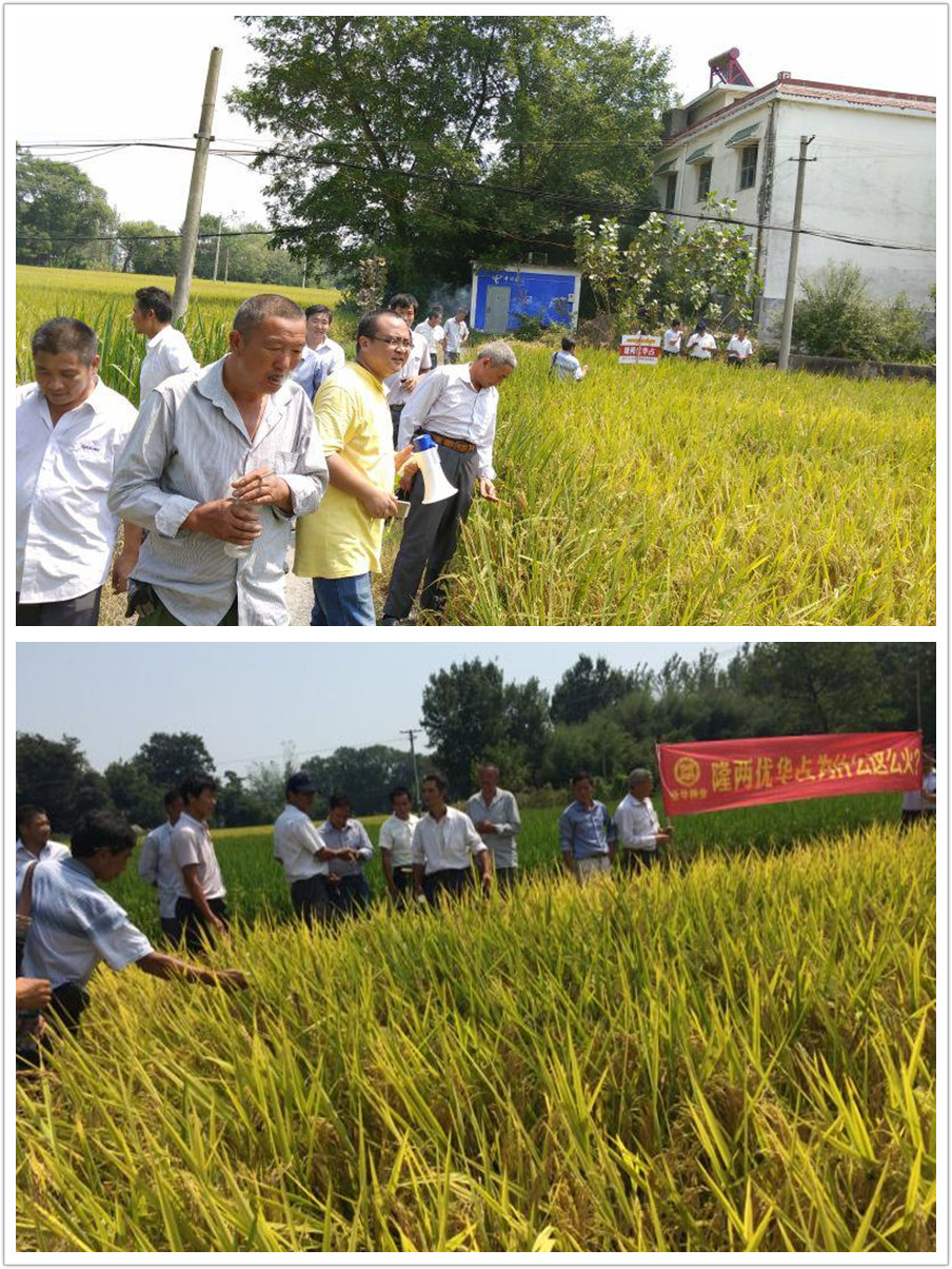 2015年9月11日上午,潛山縣梅城鎮(zhèn)迎來了60多位零售商和種田大戶,在代理商吳總的喇叭聲中觀摩會正式開始:歡迎大家來參觀隆兩優(yōu)華占的田間觀摩會!