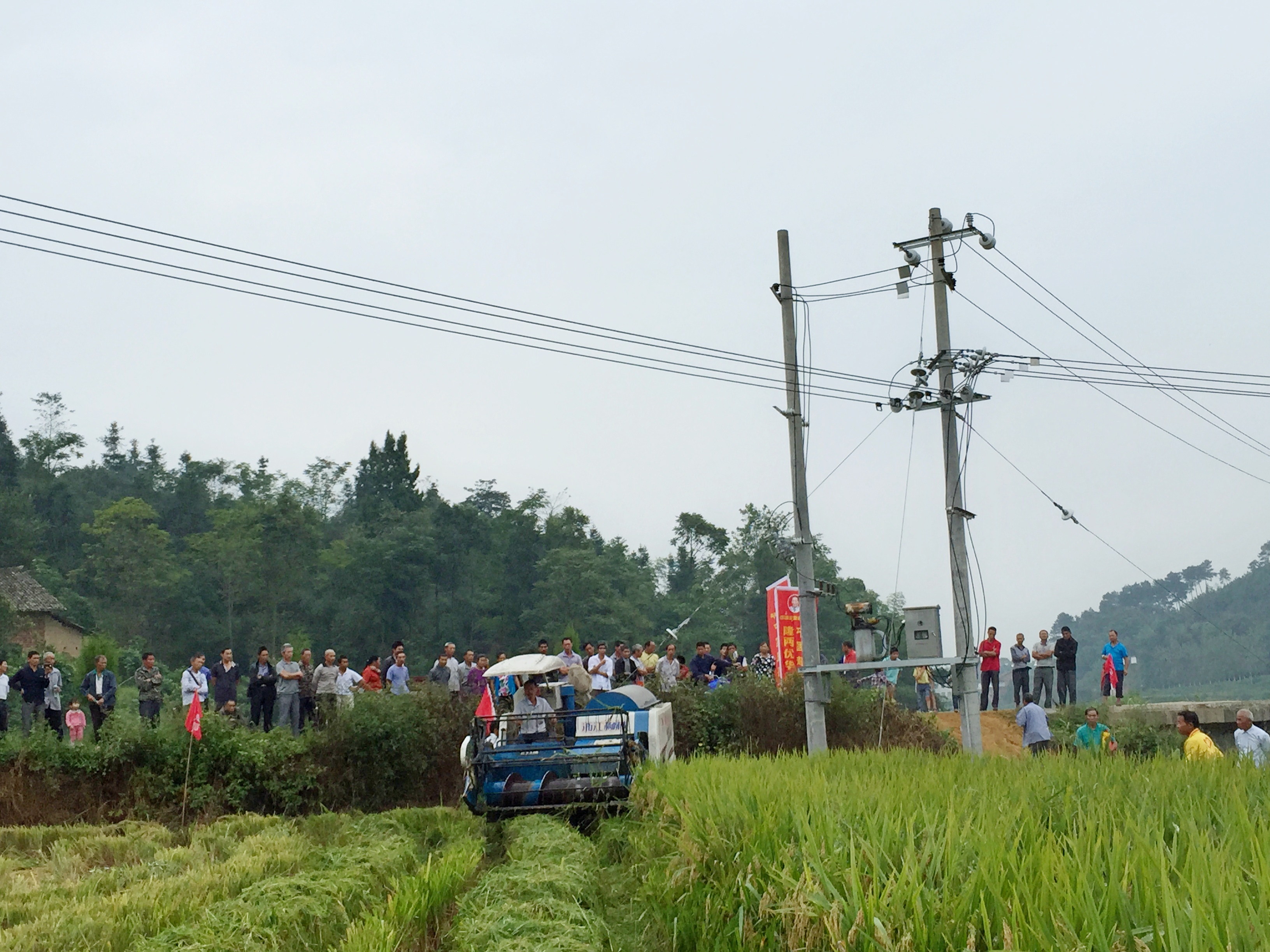 測產(chǎn)正式開始前,現(xiàn)場隨機選取了幾位農(nóng)戶代表對田間面積進(jìn)行了測量,并檢查了收割機以保證測產(chǎn)的真實性。伴隨著機器的轟鳴聲,測產(chǎn)也拉開序幕,收割完畢后現(xiàn)場進(jìn)行稱量,很多農(nóng)戶包括收割機手都表示這個品種確實不錯,比其他品種產(chǎn)量都要高。事實證明,隆兩優(yōu)華占的產(chǎn)量名不虛傳,現(xiàn)場收割0.56畝,實收濕谷984斤,折合干谷近1500斤/畝。現(xiàn)場還有一位來自農(nóng)業(yè)局的高級農(nóng)藝師,他看了之后說:這個品種結(jié)實率很高,如果這塊田管理上再用些工夫,產(chǎn)量會更高。