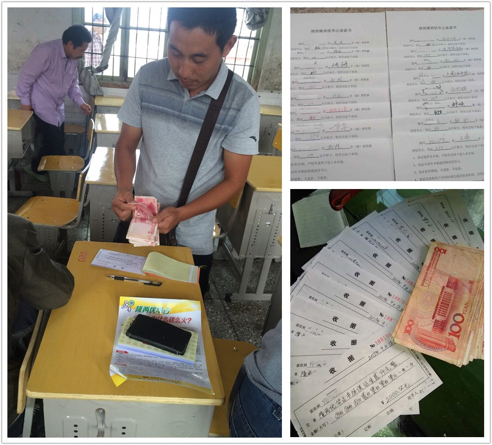 現(xiàn)場(chǎng)觀摩后進(jìn)行了室內(nèi)會(huì)議,會(huì)上由湖南亞華種子有限公司肖雙來(lái)經(jīng)理給大家做了關(guān)于隆兩優(yōu)華占的特征特性、國(guó)內(nèi)種植情況、種子供應(yīng)情況、預(yù)定銷售模式及保證金市場(chǎng)管理方法等的詳細(xì)講解。隨后,由姚元龍給大家做了相關(guān)銷售與政策的講解,經(jīng)銷商們對(duì)公司的銷售模式和市場(chǎng)管理方式表示完全贊同,大家都主動(dòng)繳納了市場(chǎng)維護(hù)保證金,之后提交了隆兩優(yōu)華占的預(yù)定數(shù)量——現(xiàn)場(chǎng)預(yù)定共3200公斤,預(yù)計(jì)總預(yù)定量將達(dá)到6000公斤。
