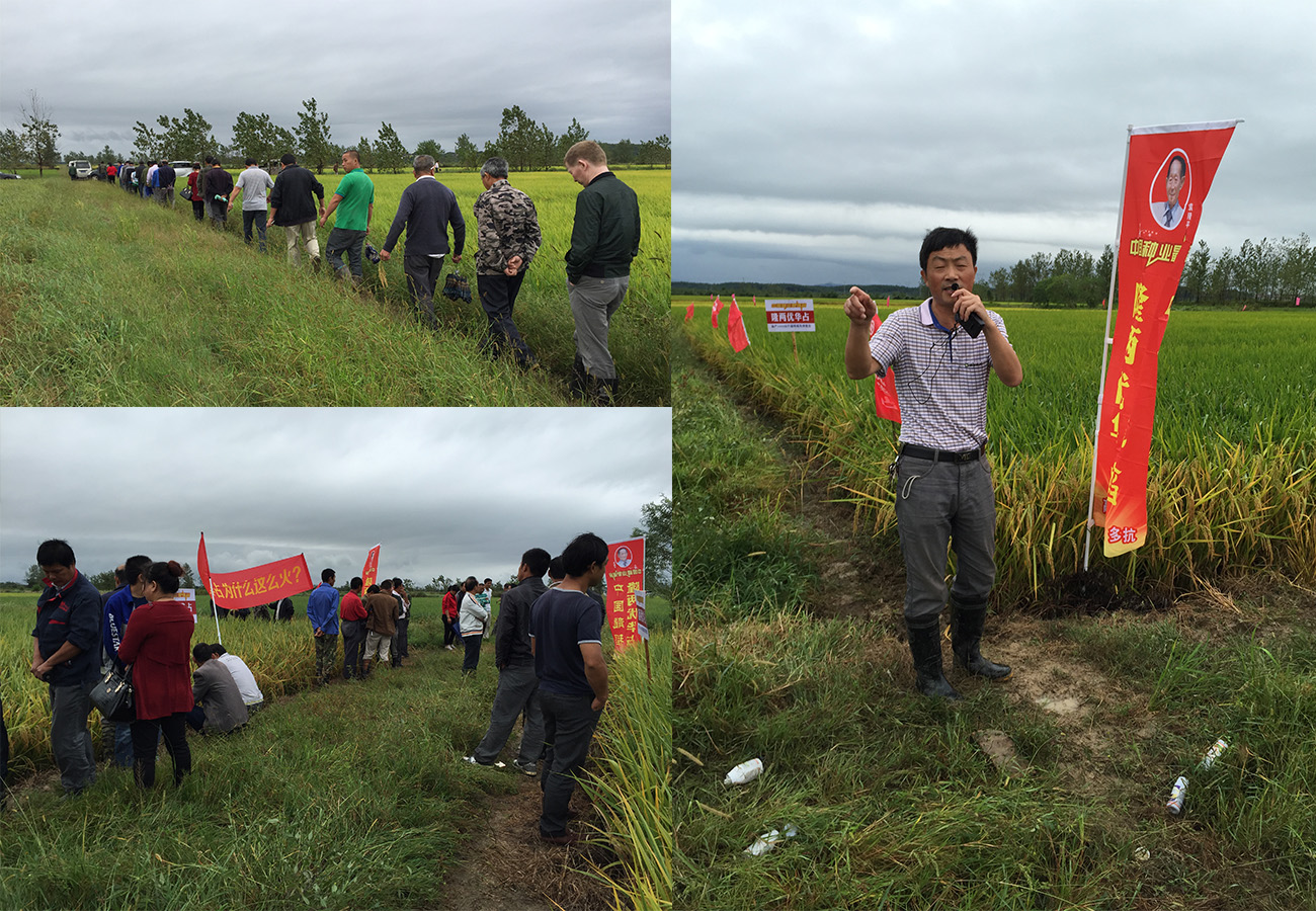 2015年9月30 日,一夜風(fēng)雨過后,隆兩優(yōu)華占觀摩會在永修如期舉行,盡管風(fēng)雨未減,但絲毫沒有減退大家觀看龍稻的熱情。上午九點鐘,浩浩蕩蕩的大隊伍挺進(jìn)了立新鄉(xiāng)中村,五十余人排起的大長龍來到了三十畝連片的隆兩優(yōu)華占示范田。