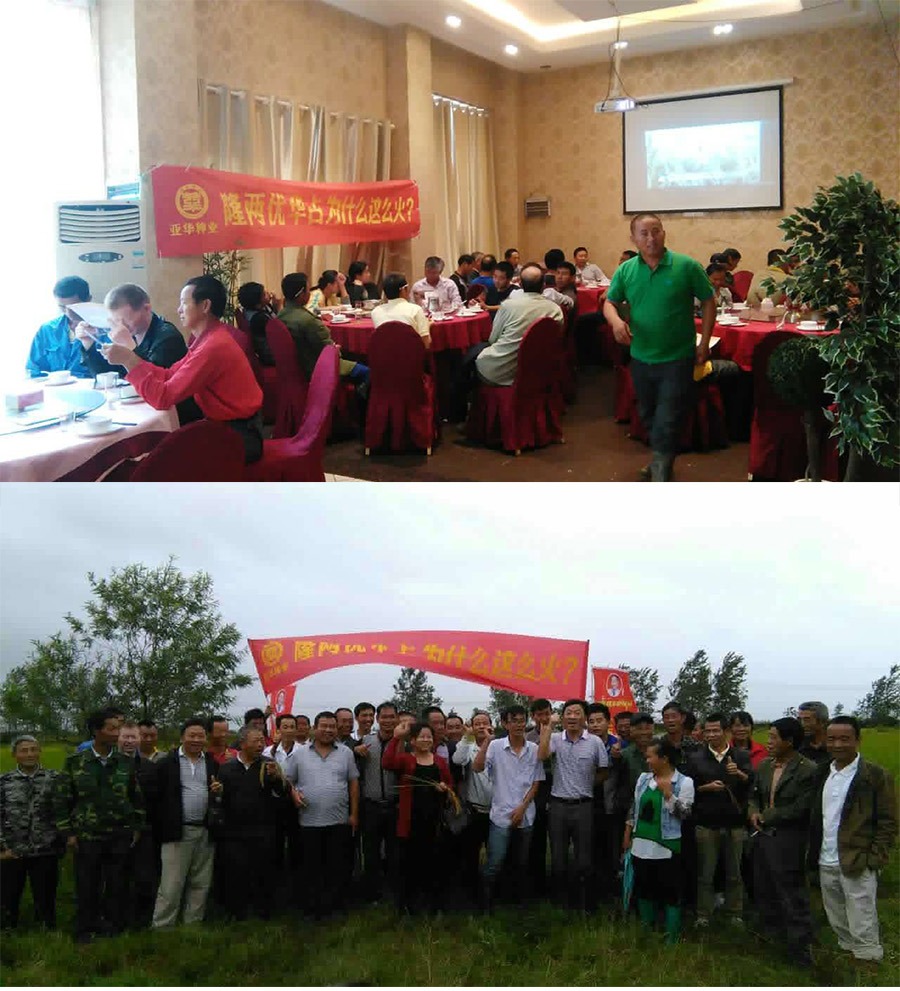 田間觀摩結(jié)束后進(jìn)行了室內(nèi)會議,會議先由湖南亞華種子有限公司區(qū)域經(jīng)理陳龍介紹了隆兩優(yōu)華占的特征特性和全省各地表現(xiàn),并對隆兩優(yōu)華占“不預(yù)定,不供應(yīng)”的銷售政策進(jìn)行了講解。隨后,鄉(xiāng)鎮(zhèn)經(jīng)銷商就隆兩優(yōu)華占的表現(xiàn)情況進(jìn)行了分享,三角鄉(xiāng)經(jīng)銷商袁汝俊這樣講道:“隆兩優(yōu)華占不僅抗倒性強、分蘗力強、抗病性好,米質(zhì)也是一等一的優(yōu)秀,我非常認(rèn)可這個品種!”