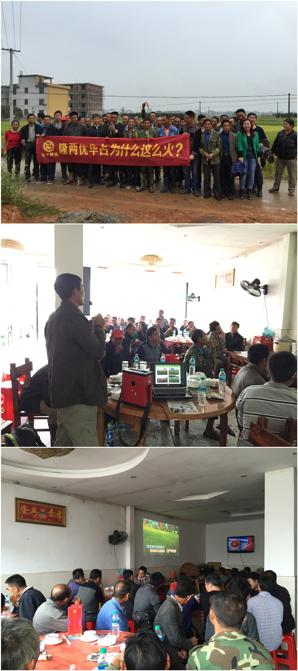 今年種植了1000余畝隆兩優(yōu)華占的干州鎮(zhèn)戴老板向大家分享了種植心得,他說:“今年我種了這么多隆兩優(yōu)華占,整體都表現(xiàn)非常好,沒有稻瘟病也沒有倒伏,已經(jīng)收割的產(chǎn)量也比其他品種高,如果在管理上再稍加功夫,產(chǎn)量更高,隆兩優(yōu)華占是真正的好品種!大家放心去種!”隨后,奉新縣代理商喻紅向大家說:“前幾天一位農(nóng)戶告訴我,今年種了3畝隆兩優(yōu)華占,干谷賣了6400多塊錢,而且米廠是優(yōu)先收購,價格也比其他品種的高!”大家聽了他們的介紹后,對隆兩優(yōu)華占的信任又多加了一分!