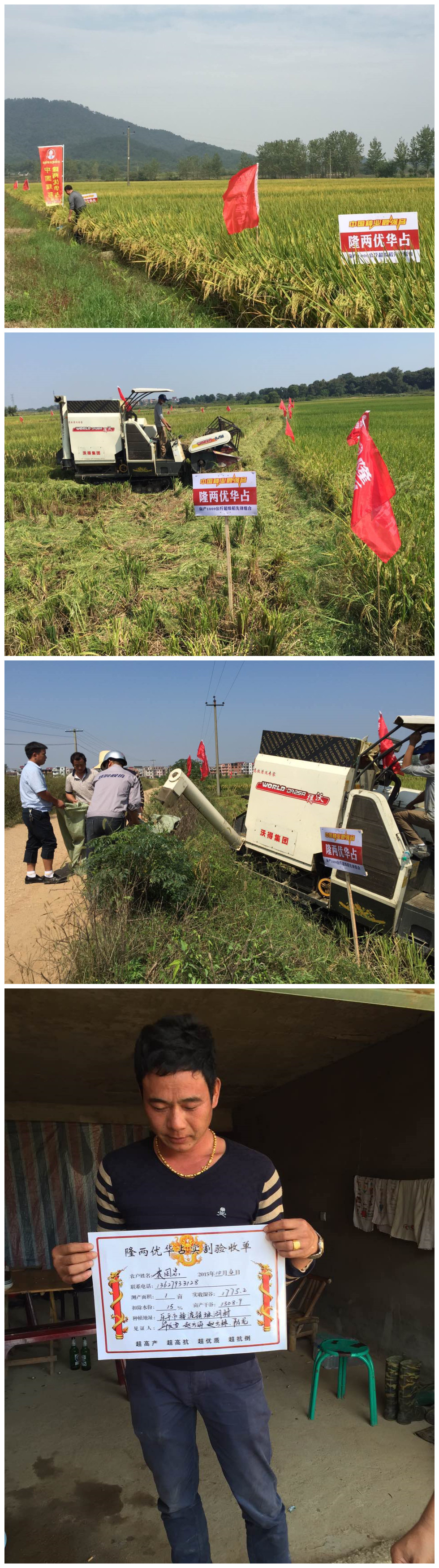 2015年初,許多種田大戶(hù)簽定“我為隆兩優(yōu)華占代言”協(xié)議書(shū),即連片種植100畝隆兩優(yōu)華占,收割時(shí)亞華種業(yè)組織測(cè)產(chǎn)小組進(jìn)行現(xiàn)場(chǎng)測(cè)產(chǎn)驗(yàn)收。