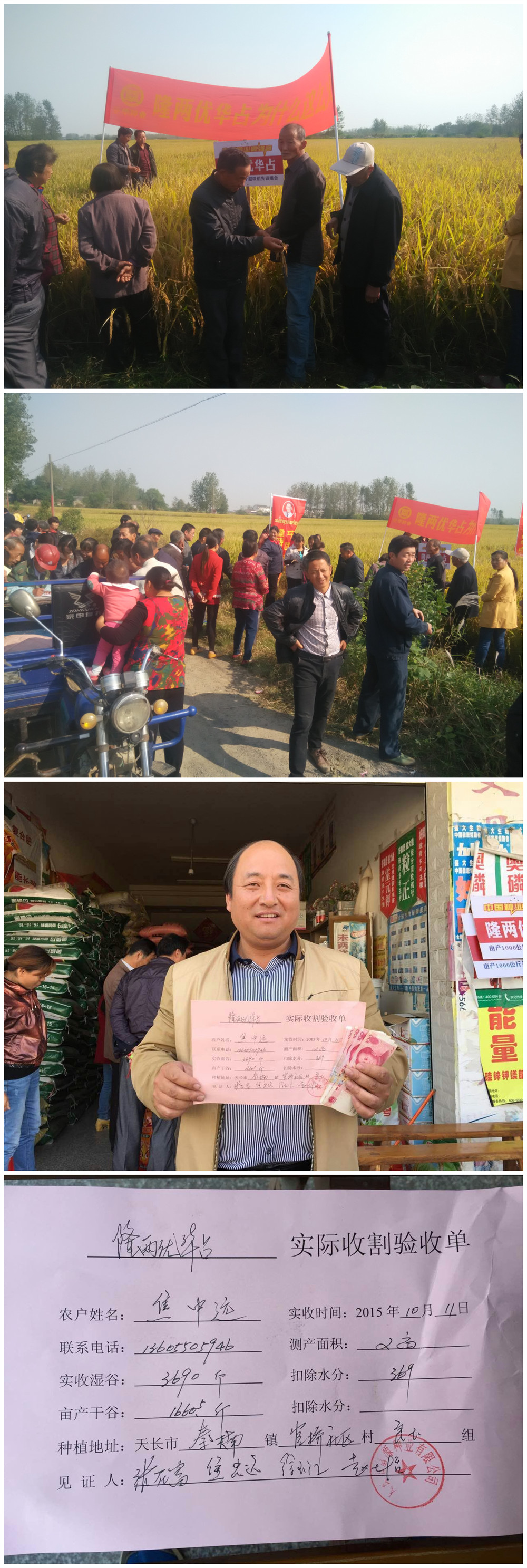 經(jīng)過半個小時的收割,這片2畝的田塊,實收稻谷3690斤,出去水分折合干谷1660.5斤。種植戶焦中遠喜上眉梢,,本以為能收到1400斤,實際干谷收了1660.5斤!沒有想到隆兩優(yōu)華占竟有這樣高的產量。來參觀的零售商們特別稱贊麥茬田能有這樣高的產量在整個天長都不多,非常認可隆兩優(yōu)華占的穩(wěn)產高產特性,稱贊隆兩優(yōu)華占分蘗能力強,無病蟲害,抗倒伏能力強,結實率高。是災年穩(wěn)產,豐年高產的超級好品種!