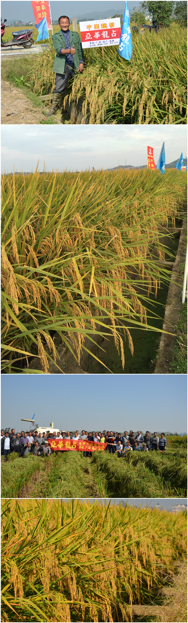 2015年10月15日,江西余干縣代理商朱保華組織零售商和種田大戶70余人集聚高埂村20畝連片亞華龍占示范田,秋高氣爽,彩旗飄飄,亞華龍占昂首挺立等待著大家的檢閱,測(cè)產(chǎn)的號(hào)角即將吹響!
