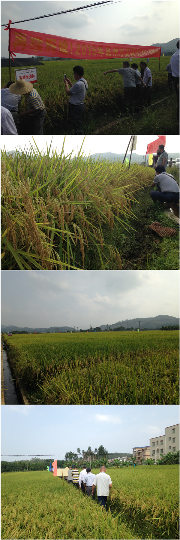 2015年10月31日,湖南亞華種子有限公司代理商之一的鄭信權(quán),組織高州各個(gè)鄉(xiāng)鎮(zhèn)核心零售商,來到了位于廣東高州東岸鎮(zhèn)的百畝連片深兩優(yōu)5814示范片現(xiàn)場觀摩,查看“彩虹”過后的大田表現(xiàn)。