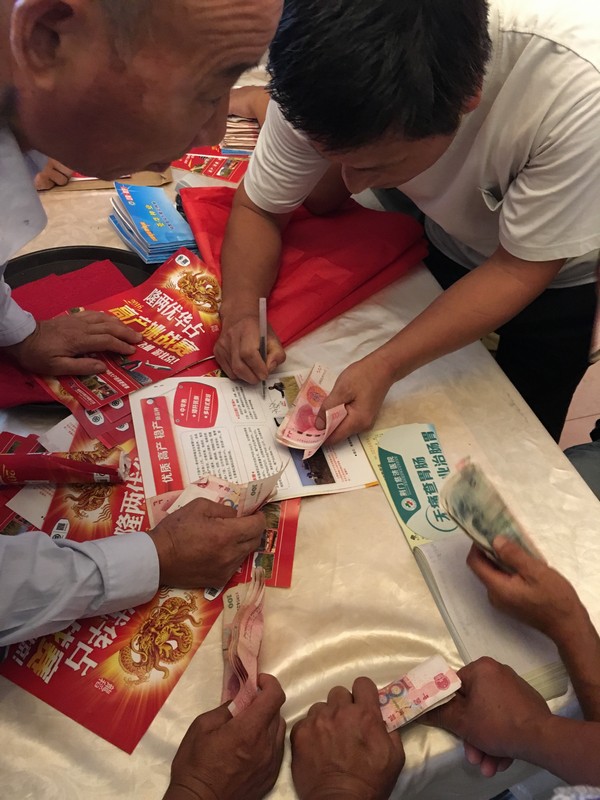 整個預(yù)訂過程非?;鸨掷m(xù)了近一個小時,現(xiàn)場130多位農(nóng)戶都交了預(yù)定金,預(yù)訂金額達(dá)6萬元,預(yù)定數(shù)量超過2000斤。區(qū)域經(jīng)理黃開文與張玉鵬在預(yù)訂的同時,與種植大戶進(jìn)行了深入交談,大家對隆兩優(yōu)華占的優(yōu)勢非常看好,表達(dá)了希望與公司合作共贏,共同致富的愿望。