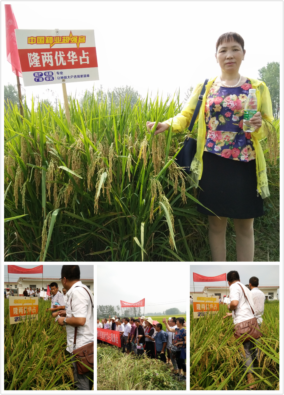 2016年8月23日,來自信陽市潢川縣各鄉(xiāng)鎮(zhèn)的100多位零售商和種植大戶齊聚潢川縣傳店鄉(xiāng)的田間地頭,共同欣賞隆兩優(yōu)華占的田間強(qiáng)勢表現(xiàn)。