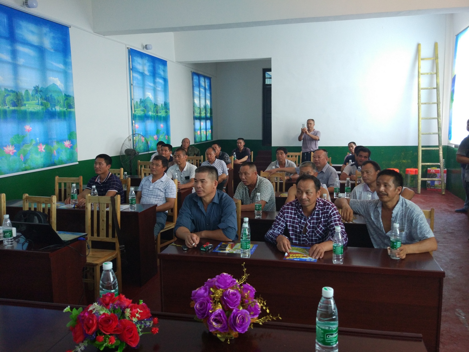 觀摩完示范田現(xiàn)場后,由益陽市赫山區(qū)代理商在會議室組織了隆兩優(yōu)華占的專題講座會,由亞華事業(yè)部湘北大區(qū)經(jīng)理康杰就隆兩優(yōu)華占的表現(xiàn)特點、再生稻的栽培管理技術(shù)、隆兩優(yōu)華占的種子供應(yīng)及相關(guān)預(yù)定優(yōu)惠政策與參會代表做了介紹和交流。
